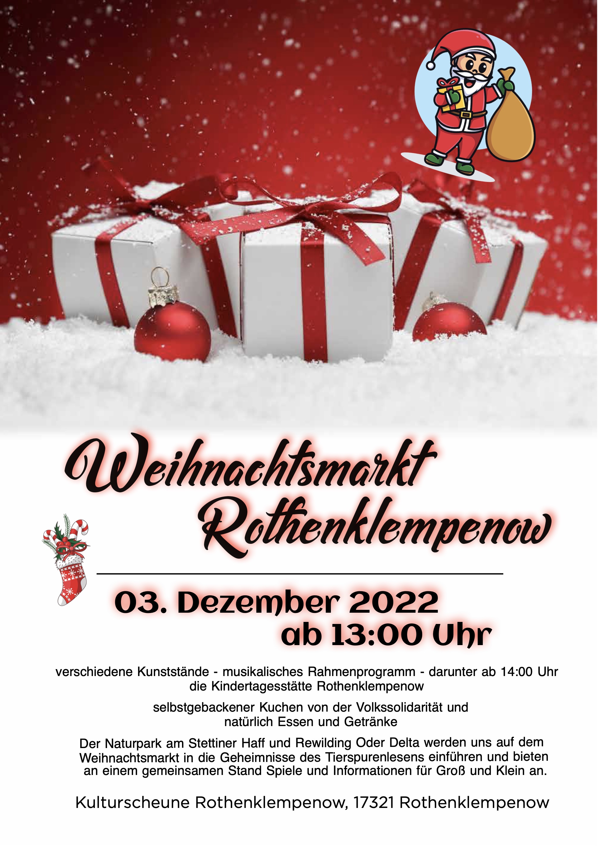 Weihnachtsmarkt Rothenklempenow 03.12.2022 ab 13Uhr