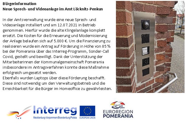 Neue Sprech- und Videoanlage im Amt Löcknitz-Penkun