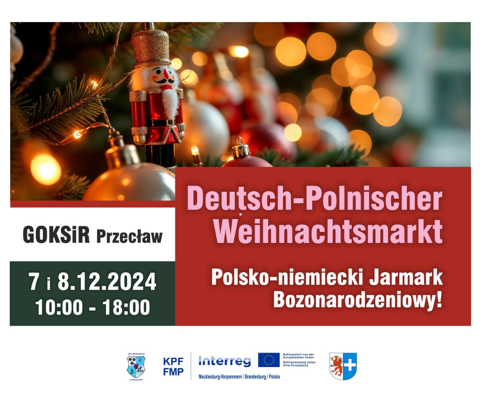 Am 7. und 8. Dezember 2024 öffnet der Deutsch-Polnische Weihnachtsmarkt im Kulturhaus Przecław (GOKSiR) seine Pforten. Besucher erwartet ein vielfältiges Programm mit traditionellen Weihnachtsaktivitäten, kreativen Workshops und besonderen Begegnungen. Der Weihnachtsmarkt liegt in der grenznahen Gemeinde Kołbaskowo und ist leicht mit dem Auto erreichbar. Alle Angebote sind kostenlos und werden simultan übersetzt, um die Teilnahme für alle zu erleichtern.