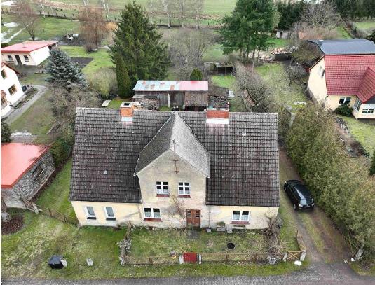 Das Verkaufsobjekt befindet sich im Zentrum der Gemeinde Bergholz, in der Löcknitzer Straße 34 und ist mit einem leerstehenden, ungenutzten Wohnhaus bebaut. Es handelt sich um ein eingeschossiges in Lehmstaken-Fachwerkbauweise auf Feldsteinen errichtetes Wohnhaus mit pfannengedecktem Satteldach, bei dem eine grundlegende Sanierung erforderlich ist. Das Gebäude wurde in der ersten Hälfte des 19. Jahrhunderts errichtet, ist teilunterkellert und zudem denkmalgeschützt.